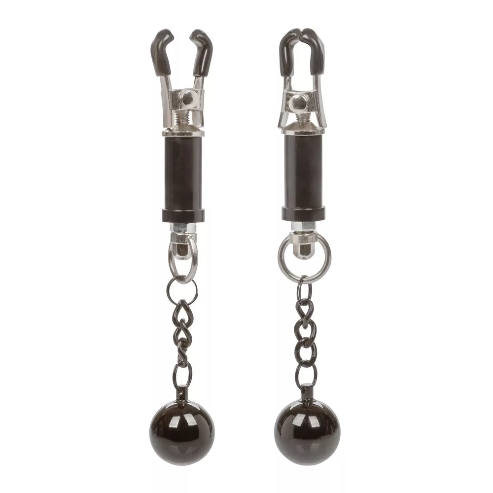 Explore elevated sensation with 2 adjustable nipple clamps, unique twisting design, and swinging weight. Clamp the naughty clasps to your body and enjoy every rush of stimulation.