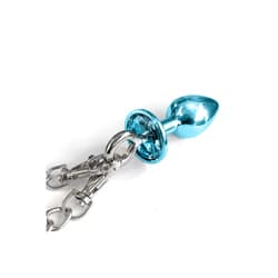 5 inch x 1 inch, 6,9 cm x 2,5 cm and the handcuffs are on a 9 inch, 22,8 cm detachable chain.nnHandcuffs with butt plugnMade of aluminium alloy, ABS, polyester and synthetic furnPlug length 6,9 cmnPlug width 2,5 cmnChain 22,8 cmnnProduct Informationnn